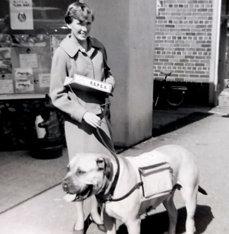 Barbara's daughter, Sara, was very young when her mother held street collections for the RSPCA - with Tiny, the bullmastiff - but she still remembers the horseshoe badges that her mother handed out to everyone who donated.