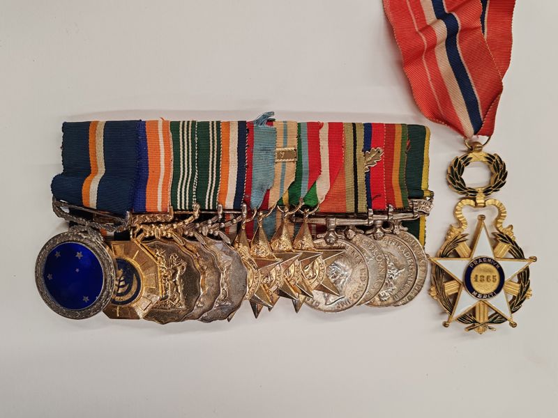 At the heart of Laura’s legacy is a collection of personal and military artefacts that together tell the story of her father’s life in service. A full set of 14 mounted medals reflects his distinguished achievements, including the Southern Cross Medal, the Africa Star with Eighth Army clasp, and the Commander of the National Order of Merit (Paraguay) — a rare international honour recognising his diplomatic contributions later in life.